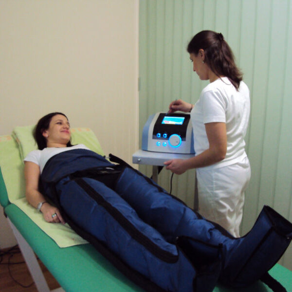 - sam terapija satsoji se od upihivanja zraka pomoću aparata u komore nogavica ili rukavica pa se na taj način stvara pritisak na određene dijelove tijela te se mehanički potiskuje nataložena međustanična tekućina